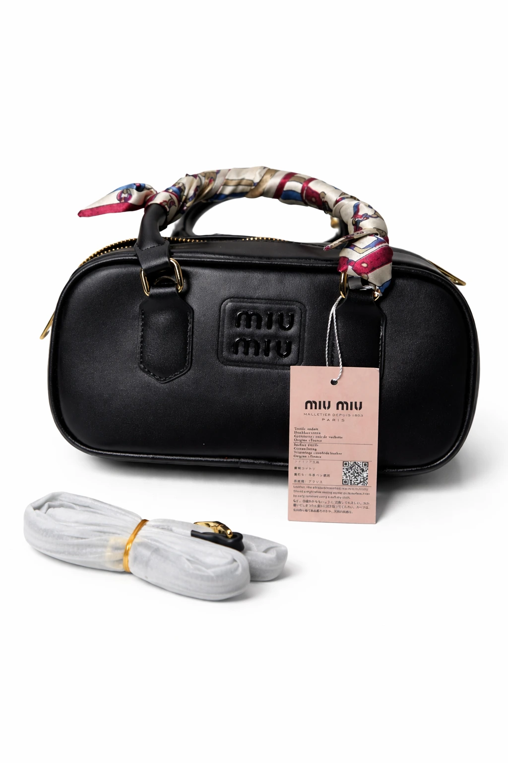 تتميز بمقبض علوي مزين بوشاح أنيق يضيف لمسة أنثوية راقية، إضافة إلى تفاصيل معدنية بلون ذهبي تمنحها مظهرًا فخمًا.